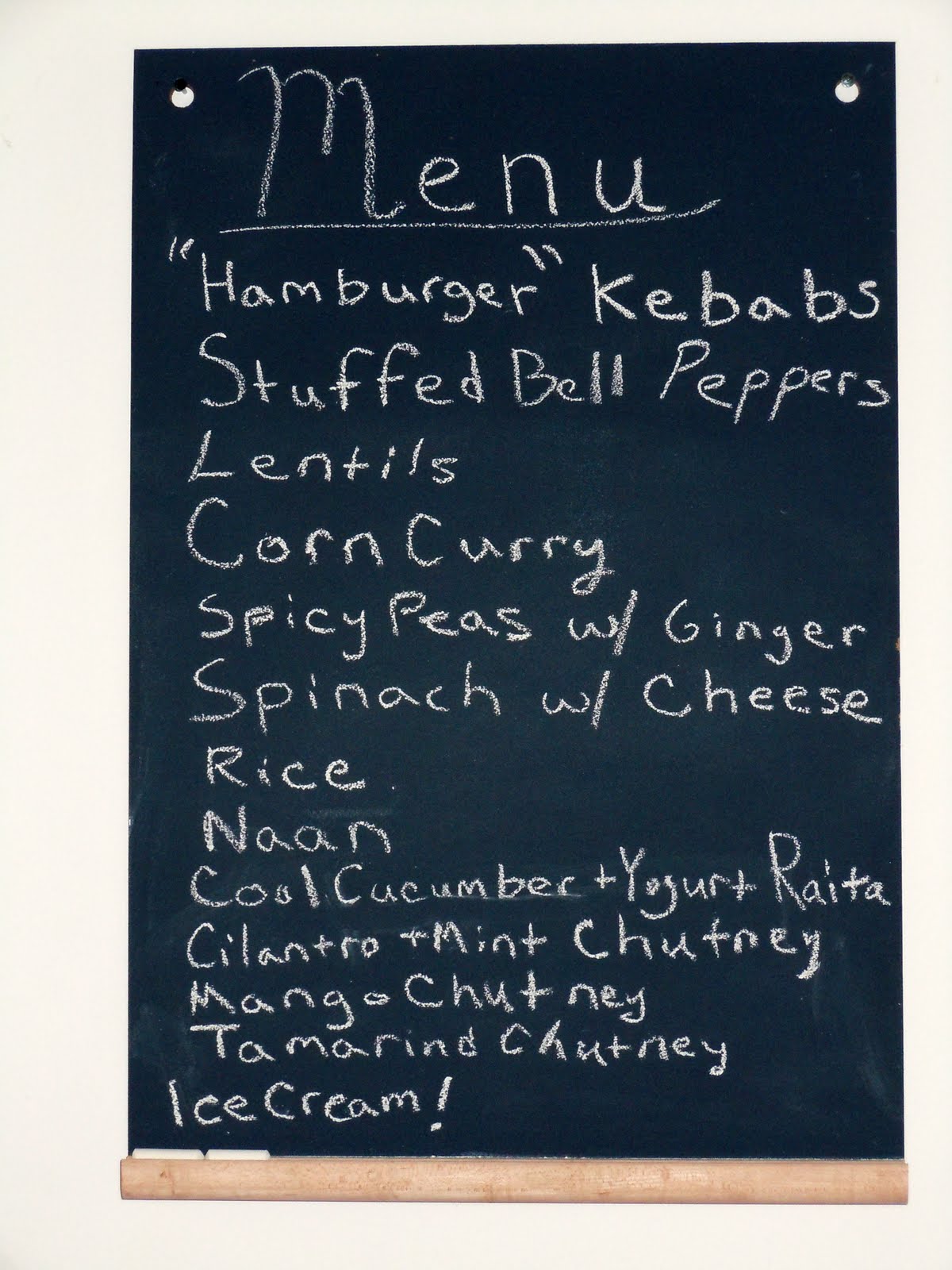 | Indian Food Party Menu -- we made everything from scratch except the mango chutney and ice cream! |